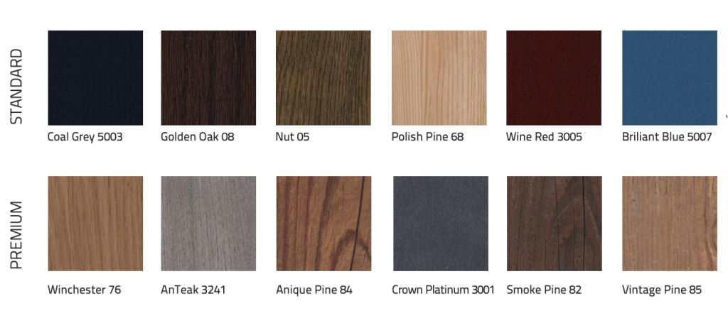 A profil széles választékban színes és fa-utánzatú dekorfóliákkal is rendelhető